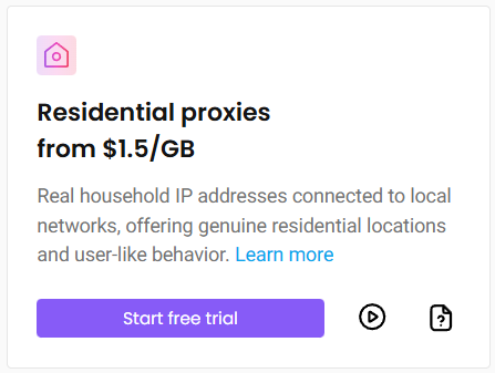 | Oxylabs | $8/GB pay as you go. Trial: not available | $9/GB pay as you go. Trial: not available | I treat it as a premium choice when I care more about the enterprise process than entry price. |