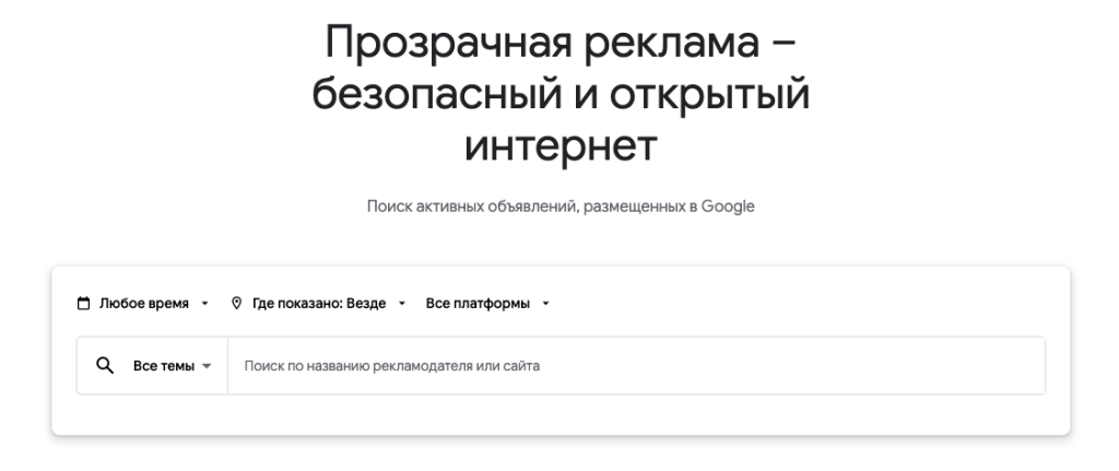 Обратите внимание на следующие нюансы при работе с Google Ads Transparency: